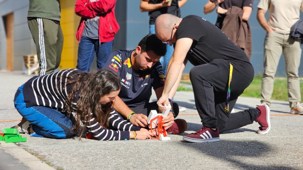 Organizados en grupos de dos personas, los estudiantes debían diseñar un mecanismo de disparo capaz de almacenar energía únicamente mediante la deformación elástica del plástico PLA, sin ningún tipo de aporte energético externo.